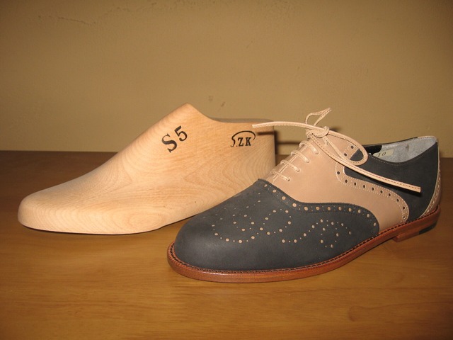 1980年代後半にショールームの展示用に製造された職人の丁寧なつくりの貴重なオックスフォードとその靴を作製した靴木型で、左足のみの1点ものです。ヒールの高さは1.3センチ。サイズは23。1点ものにつきヒールと靴型の設定が合ってない場合がございます。 長い間保管されてきたため、経年による傷や汚れ劣化等があるかもしれませんが鑑賞用 または新しい靴の作製用にいかがでしょうか。古い製品につきヒールなどに劣化があると思われますので試し履きなどされる場合は自己責任でお願いいたします。また靴木型は製作当時の物なので湿気等で大きさの増減がありますので制作時の寸法とは限りません。 ご注意:このサンプル品はショールーム展示用のため、右足は付いておりませんのでご了承ください。また、靴木型は劣化や展示時の汚れなどがございますのでご了承ください。23というサイズに関しましてはあくまで目安でカットの深さや素材など諸条件によって異なりますので一定の足入れ感を保証するものではありませんので宜しくお願いいたします。