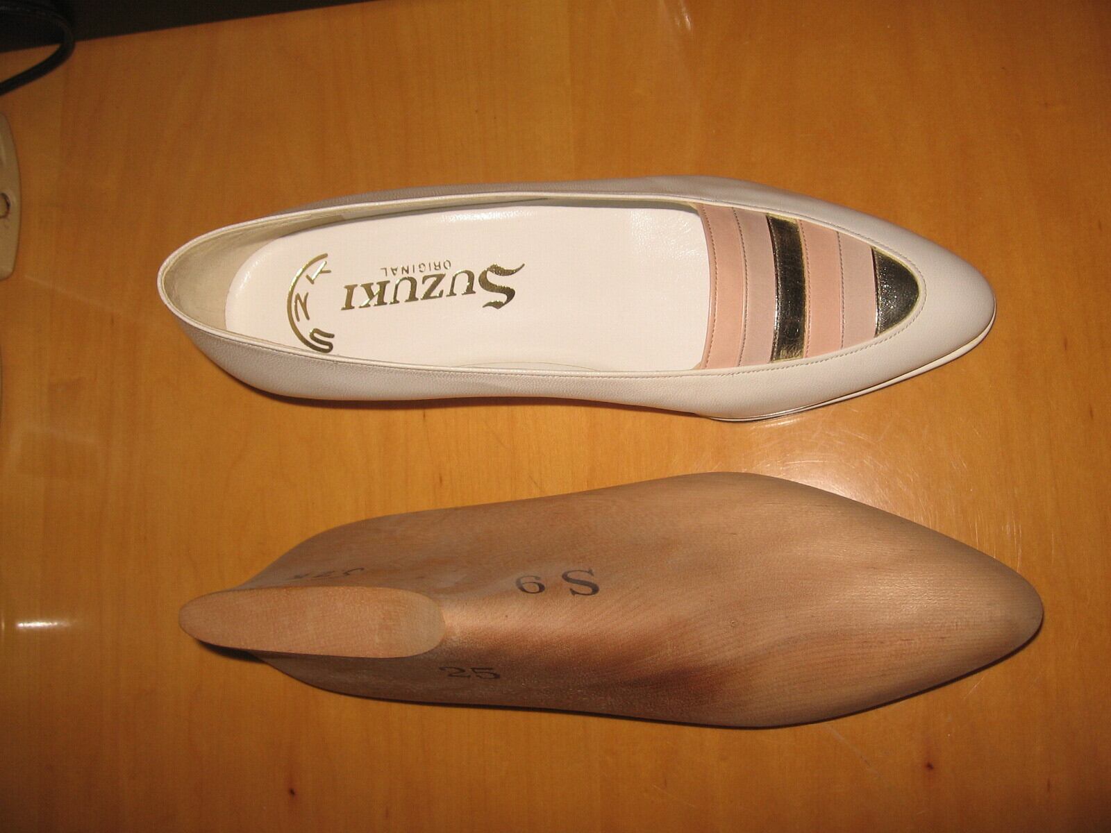 1980年代後半にショールームの展示用に製造されたレディースパンプスとその靴を作製した靴木型で、左足のみの1点ものです。ヒールの高さは2.6センチ。サイズは23。